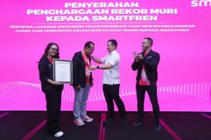 Neraca Online, SMARTFREN berhasil mencatatkan rekor nasional sebagai “Penyedia Layanan Telekomunikasi yang Menyelenggarakan Ajang Lari Terbanyak dalam Waktu Satu Tahun” melalui program SMARTFREN Fun Run 2025. Dalam kurun satu tahun, SMARTFREN sukses menggelar rangkaian kegiatan fun run di 22 kota di seluruh Indonesia, menjangkau lebih dari 15 ribu peserta dari berbagai usia dan latar belakang. Penyerahan penghargaan dilakukan di kantor XLSMART Tower, Jakarta oleh Wakil Direktur MURI, Osmar Susilo dan diterima oleh Chief Marketing Officer SMARTFREN XLSMART, Sukaca Purwokardjono. Senin (3/11)