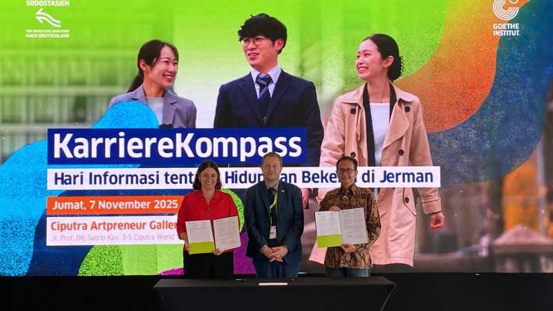 KarriereKompass di Ciputra Artpreneur Gallery, pada Jumat 7 November 2025. MoU tersebut ditandatangani oleh Direktur Goethe-Institut Wilayah Asia Tenggara, Australia, dan