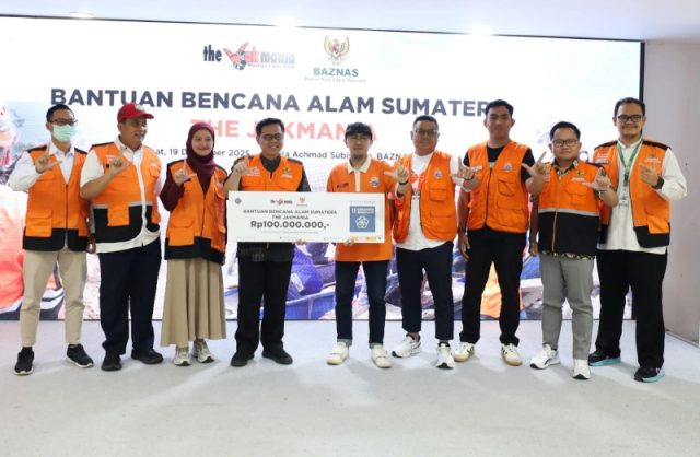 Secara simbolis penyerahan bantuan tersebut diterima langsung oleh Pimpinan BAZNAS RI Bidang Pengumpulan, H. Rizaludin Kurniawan, S.Ag., M.Si., di Gedung BAZNAS RI, Jakarta, Jumat (19/12/2025), dan dihadiri Ketua Harian The Jakmania Eddy Mulyadi, Koordinator Daerah Jakarta Pusat The Jakmania Angga Sumanjaya, Direktur Pengumpulan Perorangan BAZNAS RI H. Fitriansyah Agus Setiawan, S.SoS., M.Ikom., CFRM, beserta jajarannya.