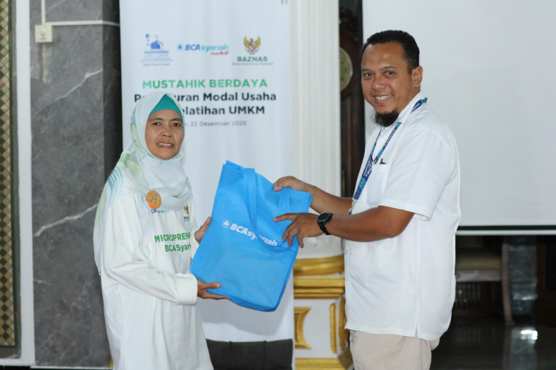Jakarta, Badan Amil Zakat Nasional (BAZNAS) terus memperkuat upaya pemberdayaan ekonomi umat melalui kolaborasi strategis bersama BCA Syariah. Kolaborasi ini diwujudkan melalui kegiatan penyaluran modal usaha dan pelatihan bagi mustahik pelaku UMKM yang diselenggarakan di Masjid Raya Attaqwa, Jakarta Timur, Senin (22/12/2025).