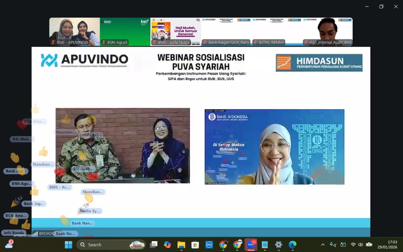 JAKARTA,– Perhimpunan Pedagang Surat Utang (HIMDASUN) bersama Asosiasi Pasar Uang dan Pasar Valuta Asing Indonesia (APUVINDO), dengan dukungan penuh dari Bank Indonesia (BI), menyelenggarakan webinar sosialisasi instrumen Pasar Uang Antarbank Berdasarkan Prinsip Syariah (PUVA Syariah). Acara yang berlangsung secara daring ini diikuti dengan antusias oleh 351 peserta yang terdiri dari perwakilan Bank Umum Konvensional (BUK), Bank Umum Syariah (BUS), dan Unit Usaha Syariah (UUS).