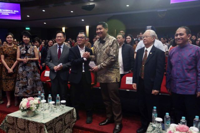 Keterangan foto : Kiri ke kanan. Dr. (H.C.) James Riyadi (Pendiri Yayasan Pendidikan Pelita Harapan, Praktisi Bisnis), Prof. Brian Yuliarto, S.T., M.Eng., Ph.D. (Menteri Pendidikan Tinggi, Sains dan Teknologi RI), Maruarar Sirait, S.I.P. (Menteri Perumahan dan Kawasan Permukiman RI sekaligus Ketua Umum Panitia Natal Nasional), Dr. (Hon.) Jonathan L. Parapak, M.Eng.Sc. (Rektor Universitas Pelita Harahan), dan Prof. Pdt. Dr. Binsar Pakpahan (Ketua STFT Jakarta, Koordinator Nasional Seminar Natal) pada Seminar Nasional Natal 2025 bertema “Allah Hadir untuk Menyelamatkan Keluarga” yang digelar di Universitas Pelita Harapan, Karawaci, Tangerang, Selasa (3/2/2026), sekaligus menjadi penutup rangkaian Natal Nasional 2025 yang sederhana, berdampak, melalui kegiatan aksi sosial di seluruh Indonesia.
