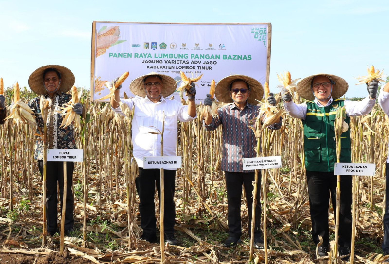 Lombok, Badan Amil Zakat Nasional (BAZNAS) RI melalui Program Lumbung Pangan di Kabupaten Lombok Timur, Nusa Tenggara Barat (NTB) sukses panen raya, dengan potensi hasil mencapai 400 ton jagung dari lahan seluas 50 hektare.
